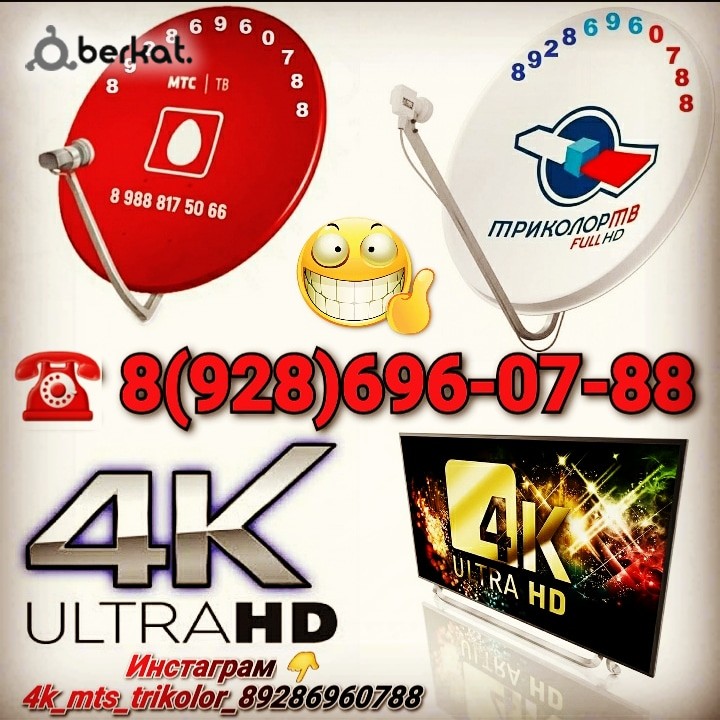 «Супер акция от МТС» Комплект с установкой и оплатой на год за 6490р! Канал Ингушетия уже добавили в список вещания, 270 интересных и популярных телеканалов в отличном качестве, включая 44 FULL-HD-каналов и ULTRA-HD. Гарантия на 1 год. Также производим установку телевизоров на стену, настройку и монтаж ваших антенн. Тел: 8(928)696-07-88