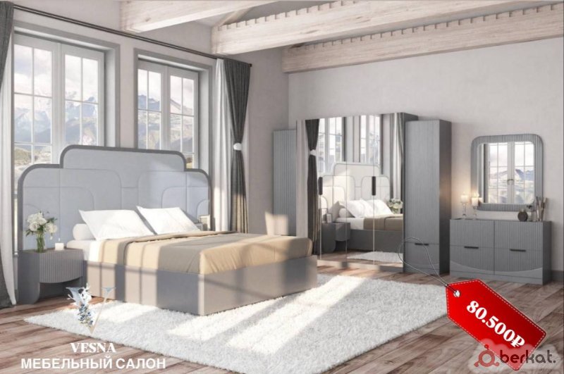 Спальня Тея 6 Двер - Фабрика: Миал Размеры: • Кровать: 180×200 см • Шкаф: высота 2.15 • Ширина 2.70 • Комод: 74×113×43 • Цвет: Серый ? Цена за наличный расчет со скидкой :80.500
