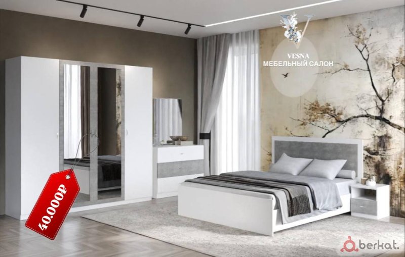 ?спальня *«версаль 5»* ?*характеристика:* ✔️пр-во: "ростокмебель" ✔️шкаф 4дв: ш1970хв2300хг520 ✔️кровать: 1800/2000 ✔️комод с зеркалом: ш1076хв780хг432 ✔️тумба прикроватная: ш610хв450хг380 ✔️цвет: дуб сонома ✔️материал фасада: мдф в пленке пвх ✔️материал корпуса: лдсп ?цена за наличный расчет со скидкой : 49.900