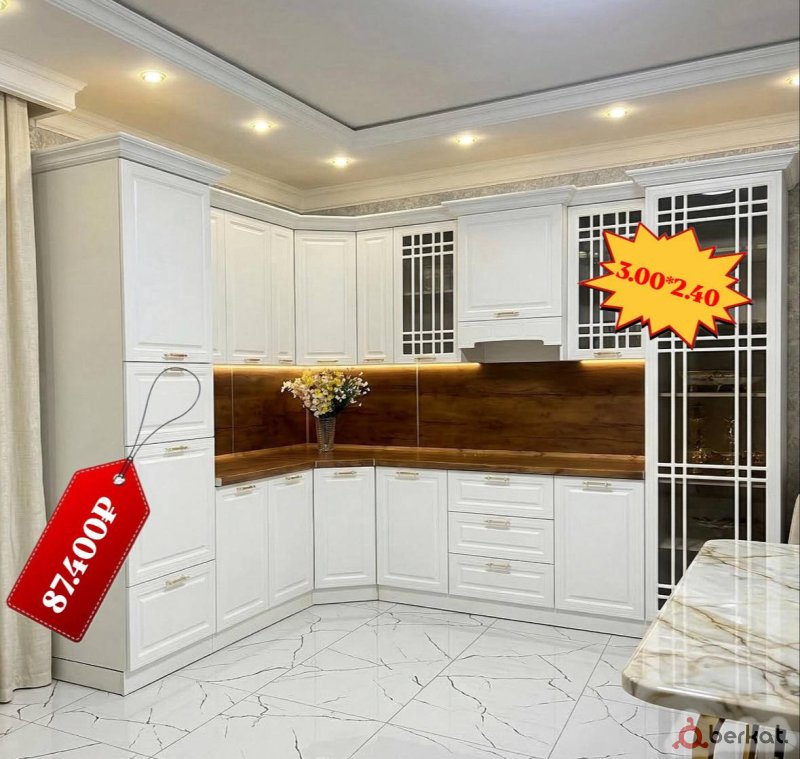 ? *Кухня «Адалия» в белом размер — 540;* Роскошная кухня с резными элементами в барочном стиле.?? ?ХАРАКТЕРИСТИКИ: ✔️Пр-во: фабрика «ЭдЭль» Ставрополь. ✔️Ш540хВ261хГ70см ✔️Фасад: МДФ. ✔️Корпус: ЛДСП Белый. ✔️Петли с доводчиками. ✔️Цвет: Белый (Матовый) ✔️Стеновая панель и столешница в комплекте. ✔️Столешница 38мм влагостойкая. ✔️Цвет стеновой и столешницы: Орех. ?Цена за наличный расчет со скидкой : 144.000