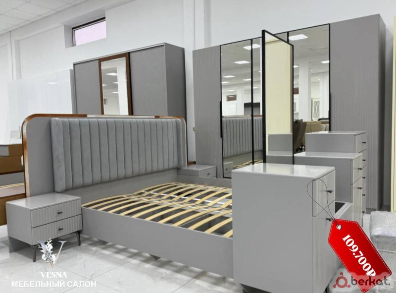 ? *спальня «кэти» 6дв*; ?характеристики: ✔шкаф: 2084х2596х550мм (вхшхг). ✔кровать: 1100х1832х2032. ✔туалетный стол: 760х1335х460. ✔тумба: 450х450х430. ✔зеркало: 900х700. ❗без матраса, дсп настилы в комплекте. ?цена за наличный расчет со скидкой : 61.000