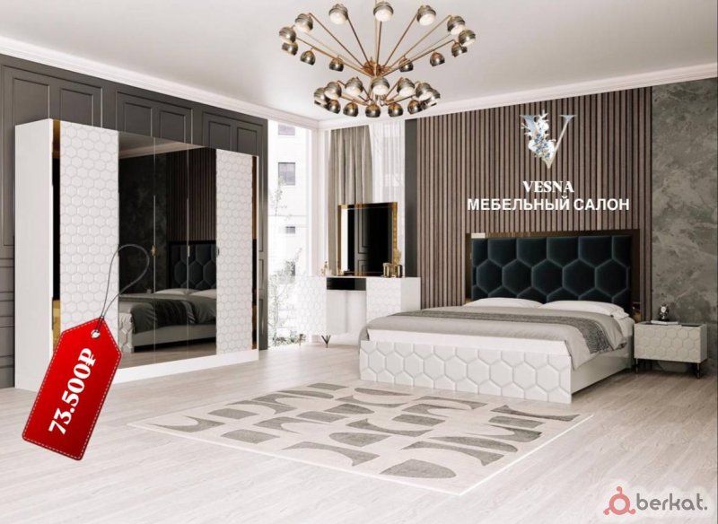 ? *Спальня «Мальта» 6дв* Современный гарнитур в светлых тонах с велюровым изголовьем. Зеркальные элементы и стильная каретная стяжка создают атмосферу изысканности и комфорта. Идеальное решение для ценителей элегантного минимализма. ?РАЗМЕРЫ: ✔Шкаф: 270х210х50см (ШхВхГ) ✔Спальное место: 180х200см ✔Туалетный столик с зеркалом: 88х75х46см ✔Прикроватные тумбы: 50х47х43см ?МАТЕРИАЛЫ: ✔Изголовье: велюр ✔Отделка: зеркальные элементы ✔Фасады: с декоративной отделкой ?КОМПЛЕКТАЦИЯ: ✔Производитель: фабрика "ЭдЭль" (Ставрополь) ❗Без матраса, в комплекте настилы. Цена за наличный расчет со скидкой : 60.000