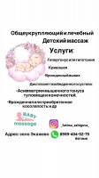 Общеукрупляющий и лечебный Детский массаж Услуги: -Гипертонус или гипотония -Кривошея -Врожденный вывих -Дисплазия тазобедренного сустава; -Асимметрия мышечного тонуса туловищаи конечностей; -Врожденная или приобретенная косолапость;и др