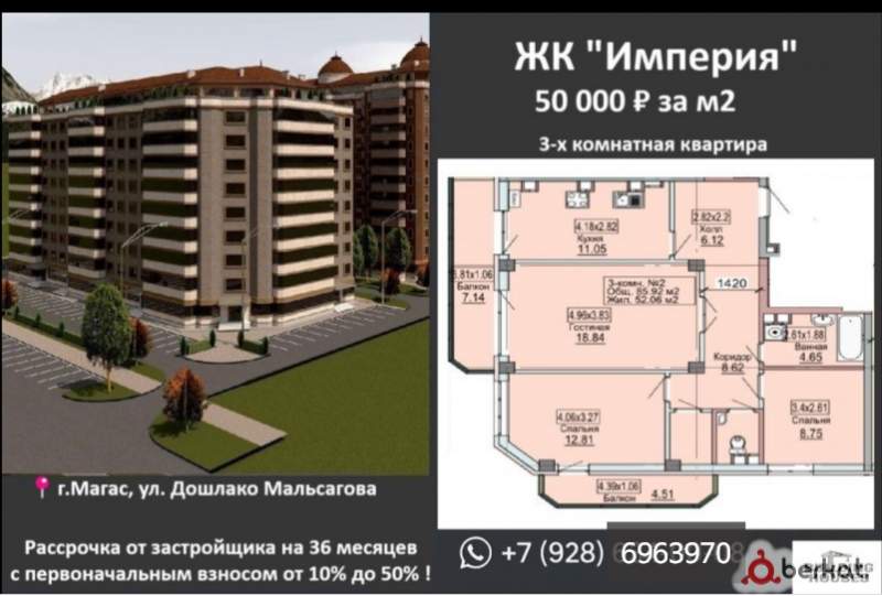 Продаются квартиры и помещения от Застройщика! Есть Рассрочка с первым взносом 30% на 2,5года.Наша Рассрочка в два раза лучше чем Исламская!Разница:1)Работаем без банка,2)без поручителей,3)во время Ваших взносов от договоренной суммы мы от себя еще делаем Вам скидки,4)Предлагаем Вам Квартиры и ПОМЕЩЕНИЕ в строящемся ДОМЕ из 16этажей Одноподъездная Свеча. Обворожительный вид на горы, ц.мечеть, Башню и на весь Магас. В наличии Есть 1но.2х;3х;комн.квартиры.(110,98;116,67;-трехкомнатные) (88,78;88,45;-двухкомнатные) (66,86;62,18;58,21;51,42М2-Однокомнатные) уточняйте информацию по номеру 8 928 099 52 24