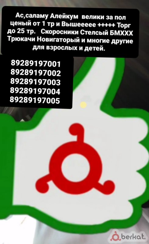 Продаю велосипеды по 5т Состояние отличное ,дукх хьикха велосипедаш яц Они у меня просто стояли ,как так мы живем рядом с трассой и не разрешали кататься Из-за ,того что стояли ,одно колесо спущено Покупали недавно +7 938 011‑11‑40(Звонить строго по этому номеру )