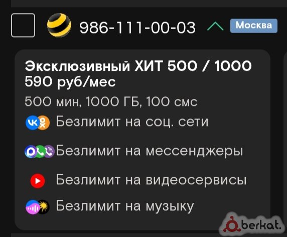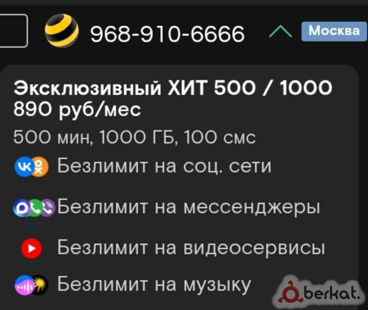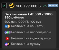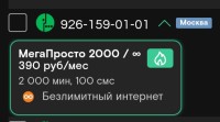 320 ₽/мес 2500 минут Безлимитный интернет Обращаться/писать на номер 9656969966