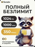 Тариф «Для любых устройств» от билайн: Всего 300 ₽/мес 1000 ГБ 500 минут на любые номера РФ Безлимитка внутри сети Раздача Wi-Fi без ограничений С оформлением на ваш паспорт.
