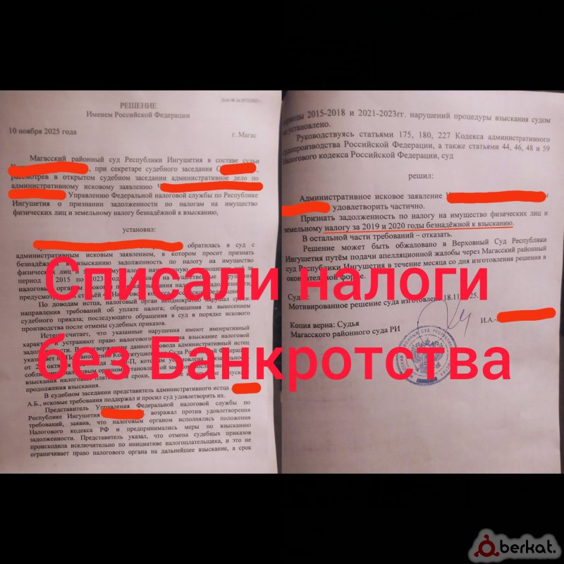 Избавьтесь от долгов – легально и без стресса! ⚖️ Банкротство через суд – списание всех долгов с рассрочкой платежей! Внесудебное банкротство через МФЦ – быстро и без лишних хлопот. Спишем налоги без банкротства– законное решение для вашего бюджета. Отменим взыскания, судебные приказы и нотариальные надписи – вернем ваши деньги! Вернем незаконно списанные средства – защитим ваши финансы. ⏳ Не ждите, пока долги станут неподъемными! Звоните, пишите прямо сейчас Тел./Вацап 8(928)743-86-01 – и получите рассрочку по услугам в размере 10 тыс.руб. в месяц! Действуйте сегодня – завтра может быть поздно! Наш адрес: г. Назрань, Альтиевский округ, на углу пересечений улиц Костоева Ганиева, недалеко от